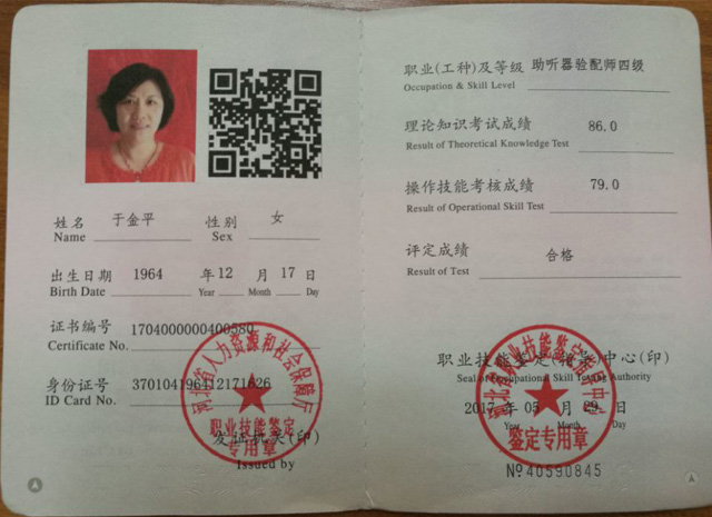 导读:国家认证四级助听器验配师