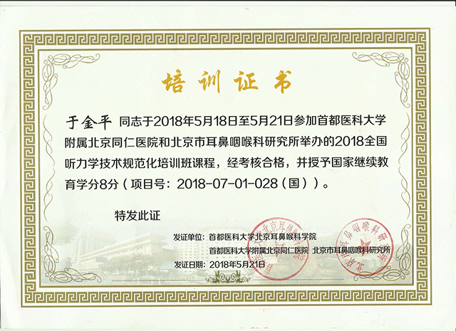 级别:国家四级助听器验配师